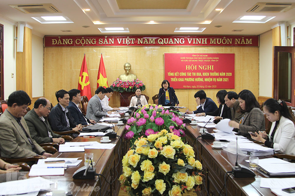 Chiều 28/12, Khối Thi đua các Ban xây dựng Đảng và các cơ quan trực thuộc Tỉnh ủy tổ chức hội nghị tổng kết công tác thi đua, khen thưởng (TĐKT) năm 2020, triển khai phương hướng, nhiệm vụ năm 2021. Đồng chí Đinh Thị Lụa, Phó Bí thư Thường trực Tỉnh ủy, lãnh đạo phụ trách khối thi đua dự, phát biểu chỉ đạo hội nghị. Đồng chí Lê Thị Thanh Hà, Ủy viên BTV Tỉnh ủy, Trưởng Ban Tuyên giáo Tỉnh ủy, Trưởng Khối thi đua chủ trì hội nghị.