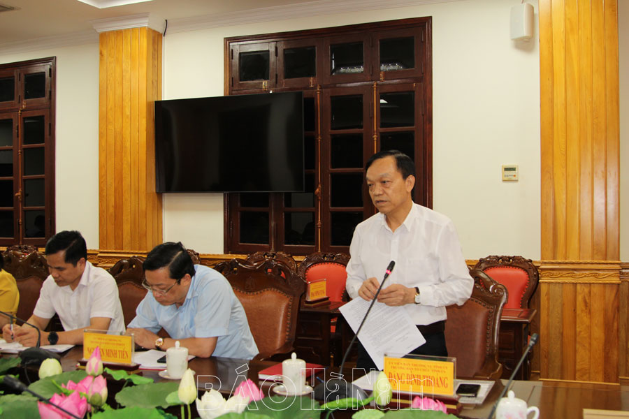 Chiều 23/7, Khối Thi đua các Ban xây dựng Đảng (XDĐ) và các cơ quan trực thuộc Tỉnh ủy tổ chức hội nghị sơ kết công tác thi đua, khen thưởng (TĐKT) 6 tháng đầu năm, triển khai phương hướng, nhiệm vụ 6 tháng cuối năm 2024. Đồng chí Đinh Thị Lụa, Phó Bí thư Thường trực Tỉnh ủy, lãnh đạo phụ trách khối thi đua dự, phát biểu chỉ đạo hội nghị.