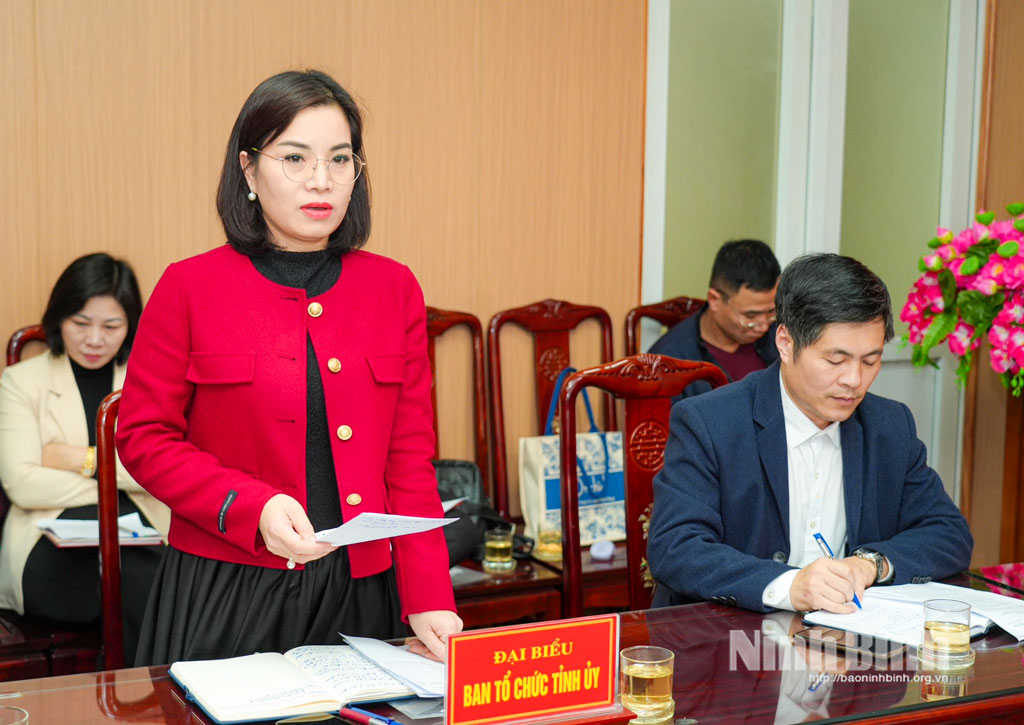 Đồng chí Đinh Thị Phượng, Tỉnh ủy viên, Phó Trưởng Ban Tổ chức Tỉnh ủy phát biểu tại hội nghị.