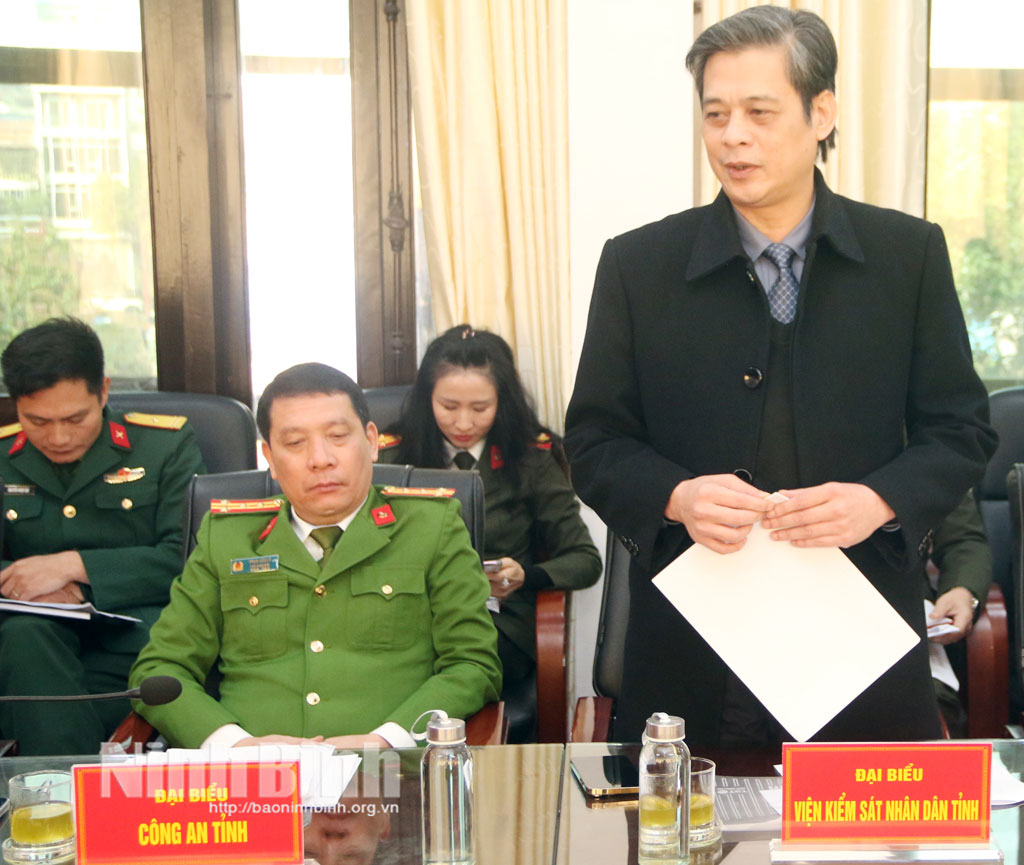 Đại diện lãnh đạo Viện Kiểm sát nhân dân tỉnh phát biểu tại hội nghị.