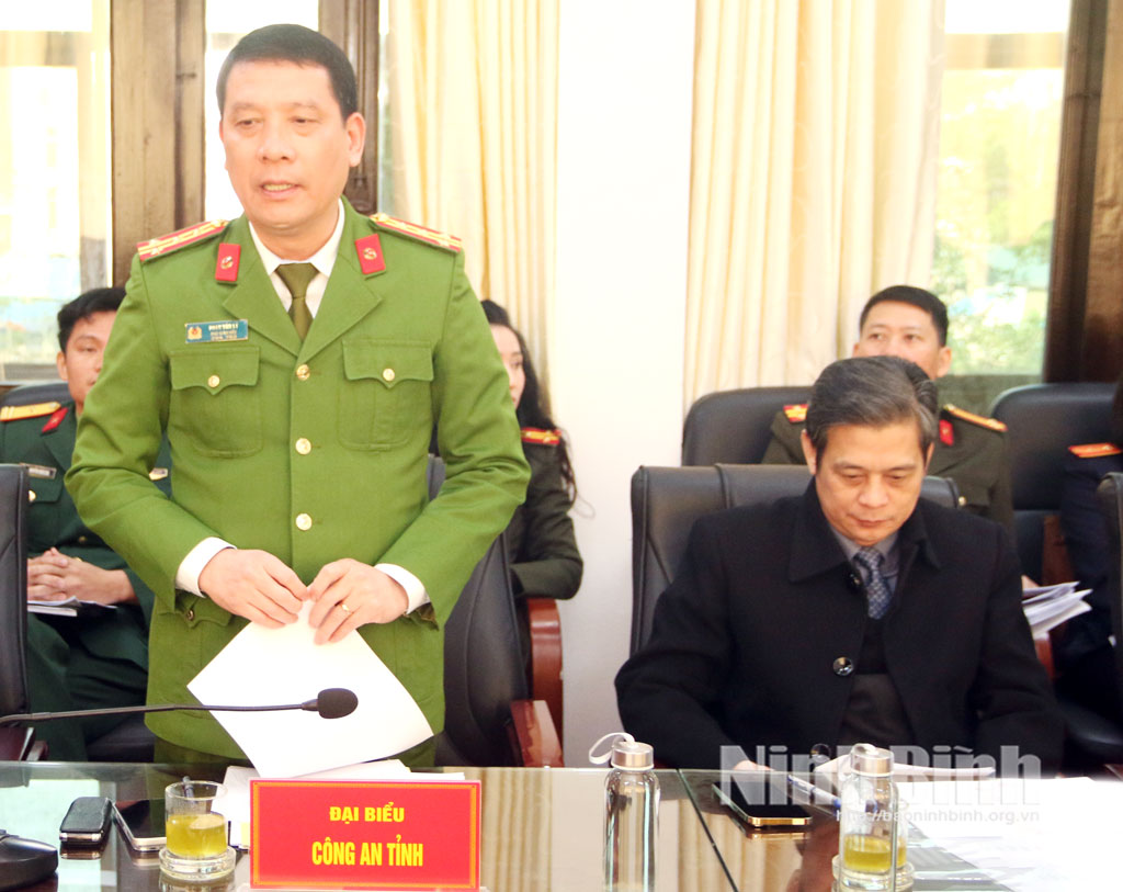 Đại diện lãnh đạo Công an tỉnh phát biểu tại hội nghị.