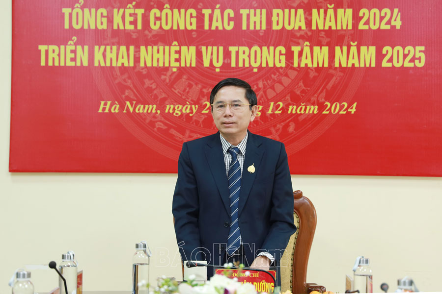 Phát biểu chỉ đạo tại hội nghị, đồng chí Phó Chủ tịch UBND tỉnh Trần Xuân Dưỡng ghi nhận, biểu dương những kết quả tích cực, toàn diện mà các đơn vị Khối thi đua Văn hóa – Xã hội tỉnh đạt được năm 2024. Đồng chí nhấn mạnh: Năm 2025 là năm rất quan trọng và có nhiều nhiệm vụ nặng nề cần phải hoàn thành theo chỉ tiêu Nghị quyết Đại hội Đảng bộ tỉnh lần thứ XX. Do đó, đề nghị các đơn vị thuộc Khối Văn hóa – Xã hội chủ động xây dựng chương trình công tác năm và lựa chọn chỉ tiêu đăng ký thi đua một cách hợp lý. Tiếp tục đổi mới, đẩy mạnh phong trào thi đua; nâng cao chất lượng công tác thi đua, khen thưởng; chú trọng bồi dưỡng, nhân rộng các điển hình tiên tiến; kịp thời biểu dương, khen thưởng các tập thể, cá nhân có thành tích tiêu biểu. Bên cạnh đó, tập trung thực hiện tốt công tác sắp xếp tổ chức bộ máy theo hướng tinh gọn, hiệu lực, hiệu quả.