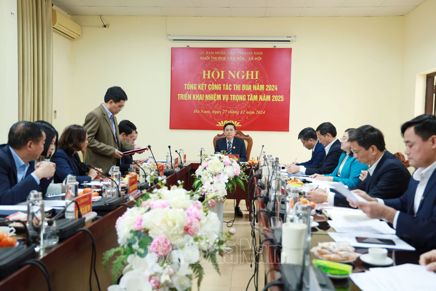Chiều 27/12, Khối thi đua Văn hóa - Xã hội tổ chức hội nghị tổng kết công tác thi đua, khen thưởng năm 2024, triển khai nhiệm vụ trọng tâm năm 2025. Đồng chí Trần Xuân Dưỡng, TUV, Phó Chủ tịch UBND tỉnh dự, chỉ đạo hội nghị.