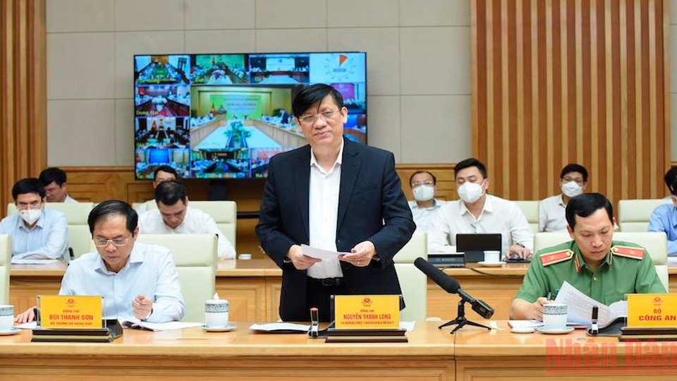 | Bộ trưởng Y tế Nguyễn Thanh Long phát biểu tại cuộc họp. |
