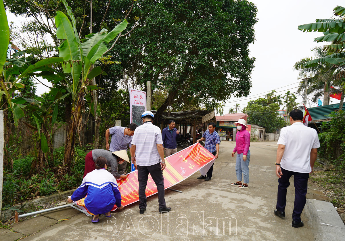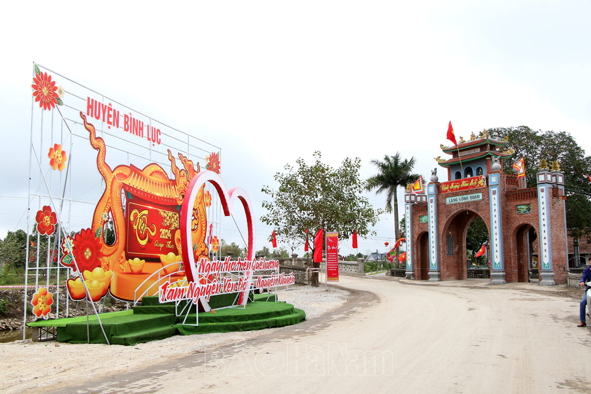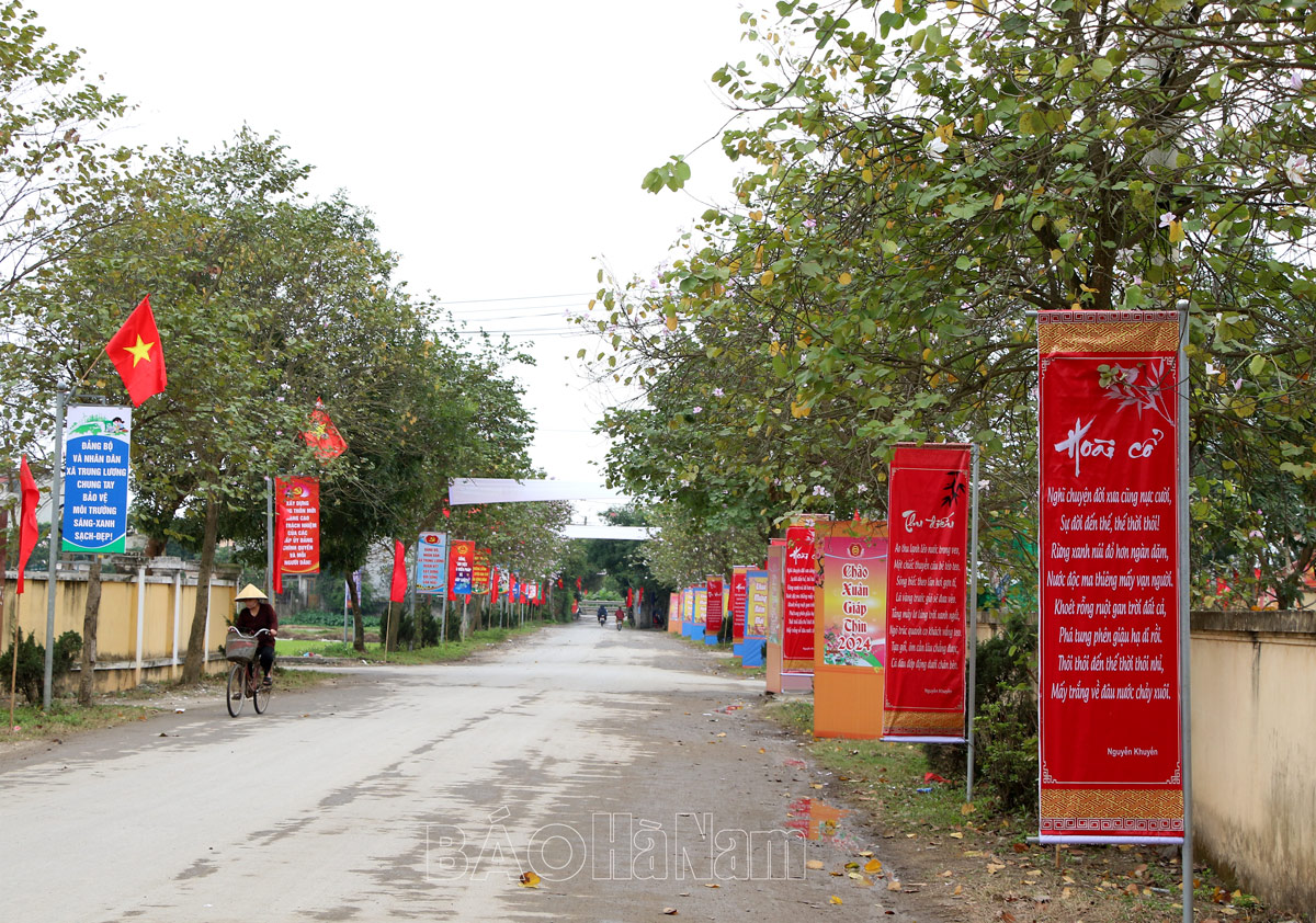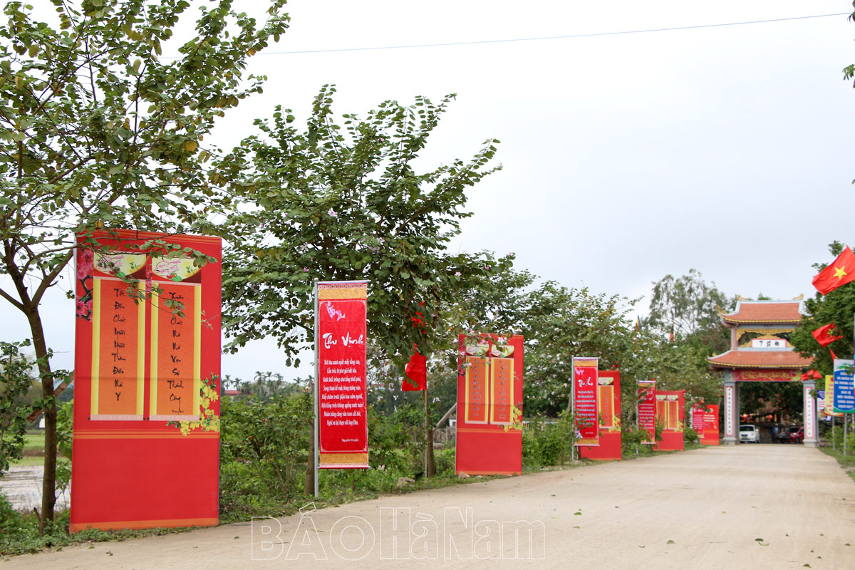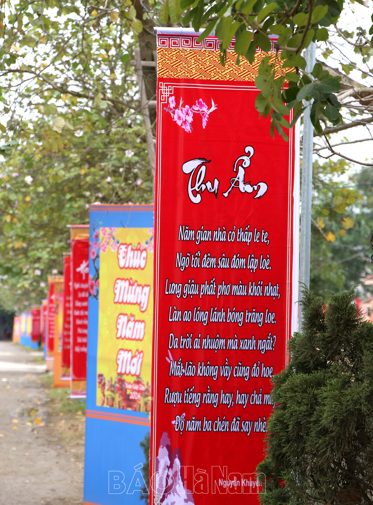 Từ đường 21A vào làng Vị Hạ và Từ đường Nguyễn Khuyến, cờ hoa, phướn thơ, pa nô... được treo, dựng tạo nên khung cảnh lộng lẫy, trang hoàng trên những con đường.