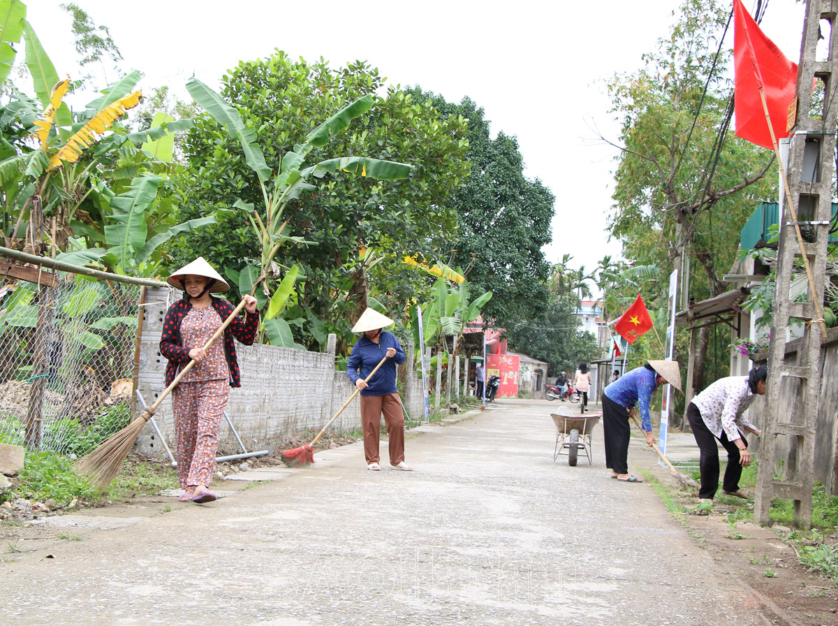 Đường vào làng Vị Hạ, xã Trung Lương được trang hoàng lộng lẫy.