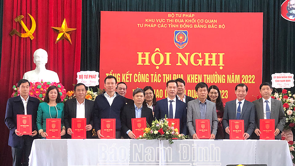 Ngày 8-12, tại tỉnh Nam Định, khu vực thi đua Khối cơ quan Tư pháp các tỉnh Đồng bằng Bắc Bộ tổ chức hội nghị tổng kết công tác thi đua, khen thưởng năm 2022 và ký giao ước thi đua năm 2023. Dự hội nghị có các đồng chí: Nguyễn Thanh Tịnh, Thứ trưởng Bộ Tư pháp; Hà Lan Anh, TUV, Phó Chủ tịch UBND tỉnh và đại diện lãnh đạo Sở Tư pháp, Cục Thi hành án dân sự (THADS) các tỉnh trong khu vực.