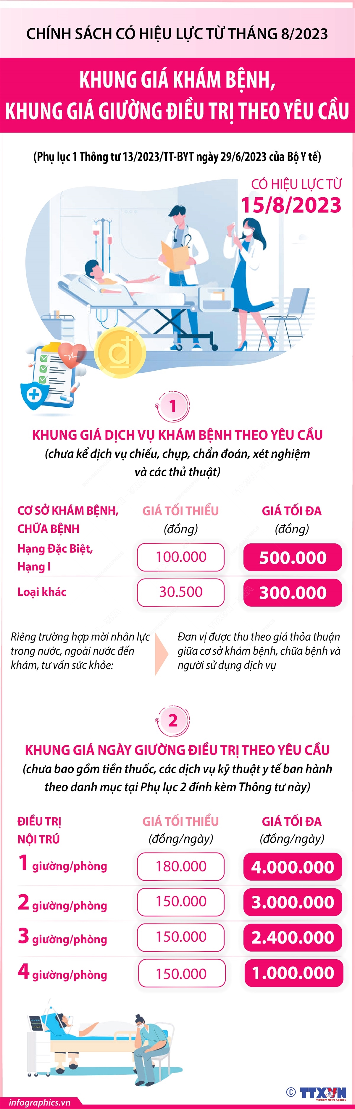 Khung giá khám bệnh, khung giá giường điều trị theo yêu cầu từ 15/8