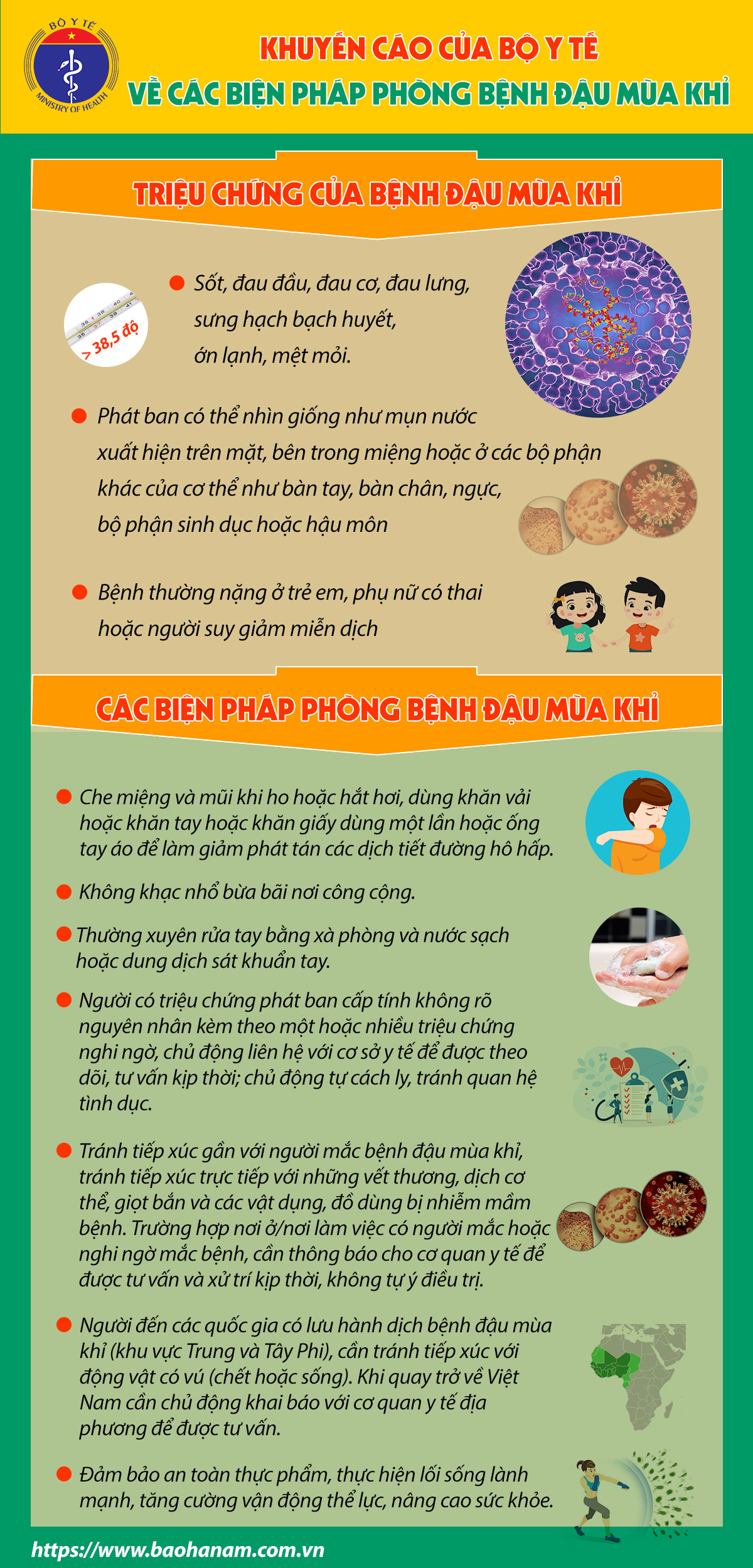 Khuyến cáo của Bộ Y tế về các biện pháp phòng bệnh đậu mùa khỉ