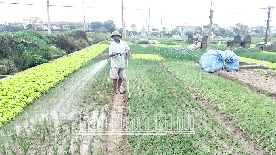 | Nông dân xã Thành Lợi (Vụ Bản) trồng, chăm sóc cây rau màu mang lại thu nhập ổn định. |