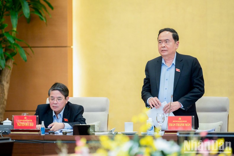 | Phó Chủ tịch Thường trực Quốc hội Trần Thanh Mẫn phát biểu ý kiến tại cuộc họp. |