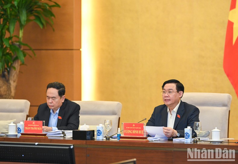 | Chủ tịch Quốc hội Vương Đình Huệ phát biểu ý kiến tại cuộc họp. |