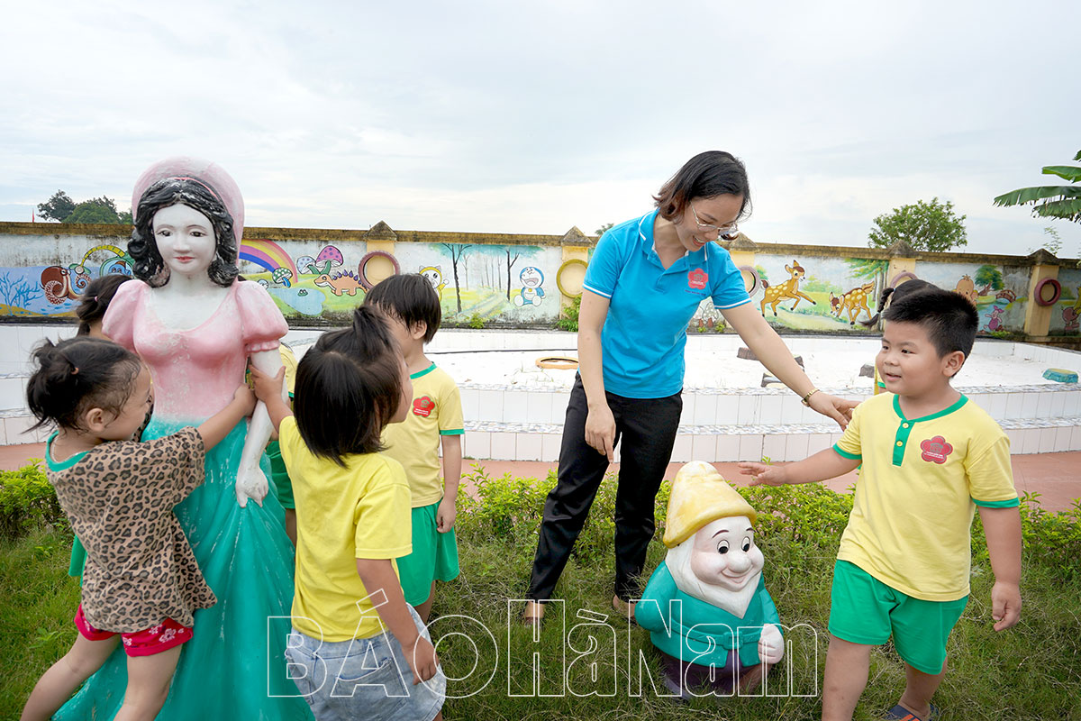 Giờ vui chơi của các bé Trường Mầm non phường Yên Bắc (thị xã Duy Tiên).
