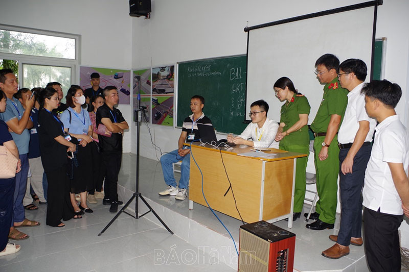 Đại tá Phạm Hùng Dương, Ủy viên BTV Đảng ủy, Phó Giám đốc Công an tỉnh và Đoàn công tác kiểm tra công tác kiểm tra thông tin thí sinh tham gia thi cử, sát hạch cấp giấy phép lái xe.