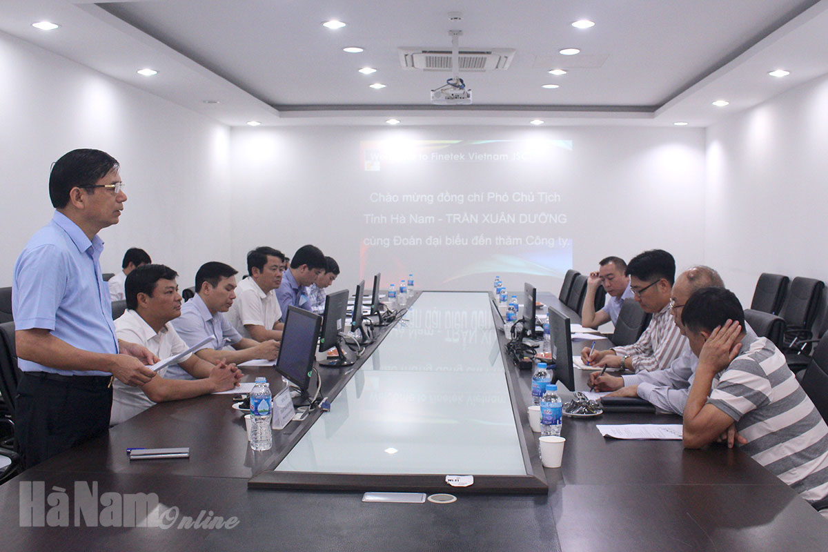 Chiều cùng ngày, đồng chí Phó Chủ tịch UBND tỉnh Trần Xuân Dưỡng cùng lãnh đạo một số sở, ngành và lãnh đạo UBND thị xã Duy Tiên đã có buổi làm việc và tham quan nhà máy sản xuất của Công ty TNHH Finetek Việt Nam (Khu công nghiệp Hòa Mạc, thị xã Duy Tiên). Đây là doanh nghiệp có 100% vốn đầu tư đến từ Hàn Quốc, chuyên sản xuất màn hình máy tính, màn hình điện thoại, bàn phím máy tính... Đi vào hoạt động từ năm 2014, đến nay, công ty đã hoàn thành xây dựng 3 nhà máy sản xuất. Năm 2020, doanh nghiệp nộp thuế thu nhập doanh nghiệp trên 5 tỷ đồng và là một trong số ít doanh nghiệp có vốn đầu tư nước ngoài đang hoạt động trên địa bàn tỉnh nộp thuế thu nhập doanh nghiêp.