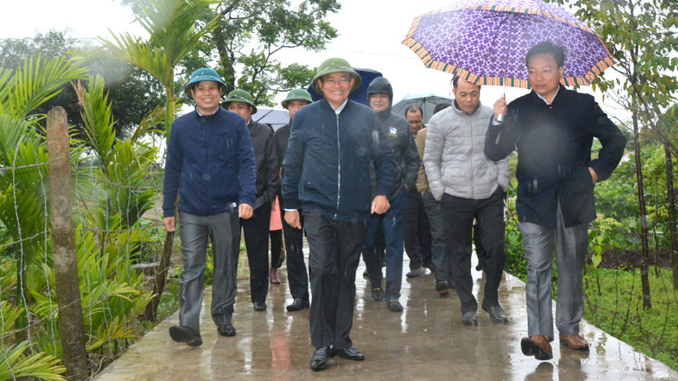 | Đồng chí Nguyễn Phùng Hoan, Tỉnh ủy viên, Phó Chủ tịch UBND tỉnh kiểm tra thực địa xây dựng nông thôn mới xóm Mỹ Tiến 1, xã Nam Phong (TP Nam Định). |