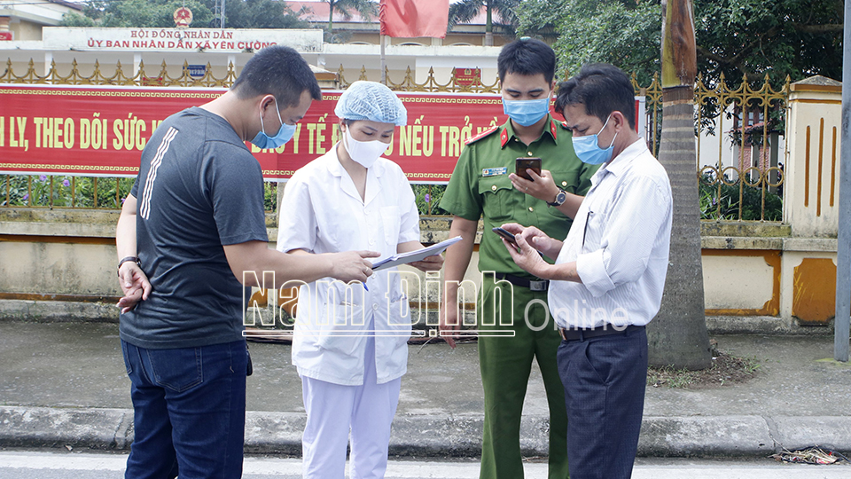 | Lập chốt kiểm soát chặt chẽ người ra vào vùng cách ly địa phận xã Yên Cường gồm 86 hộ dân, 267 nhân khẩu nằm trên trục đường 57B. |