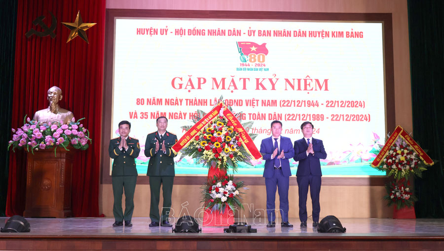 Chiều 19/12, huyện Kim Bảng tổ chức gặp mặt kỷ niệm 80 năm Ngày thành lập Quân đội nhân dân Việt Nam (22/12/1944 – 22/12/2024) và 35 năm Ngày hội Quốc phòng toàn dân (22/12/1989-22/12/2024).