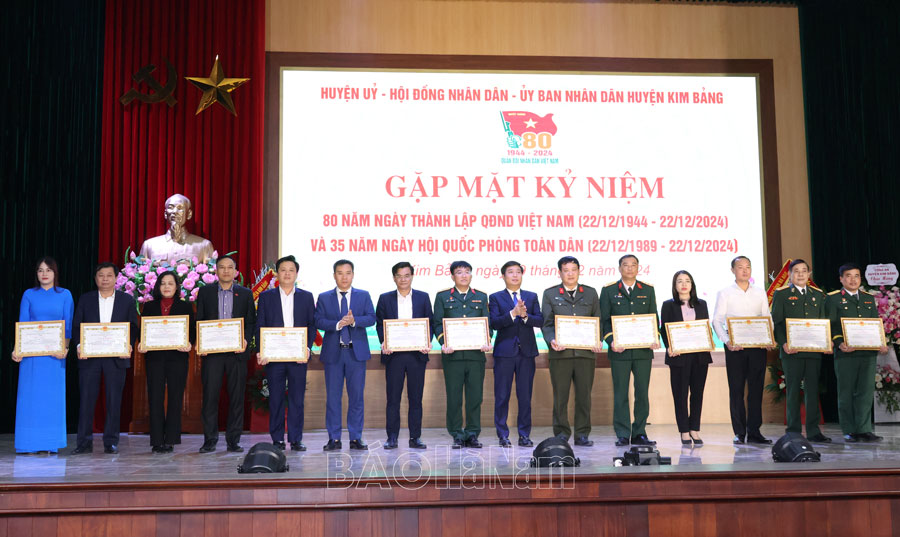 Nhân dịp này, huyện Kim Bảng đã khen thưởng 15 tập thể, cá nhân có thành tích trong tổ chức các hoạt động 80 năm Ngày thành lập Quân đội nhân dân Việt Nam và 35 năm Ngày hội Quốc phòng toàn dân.