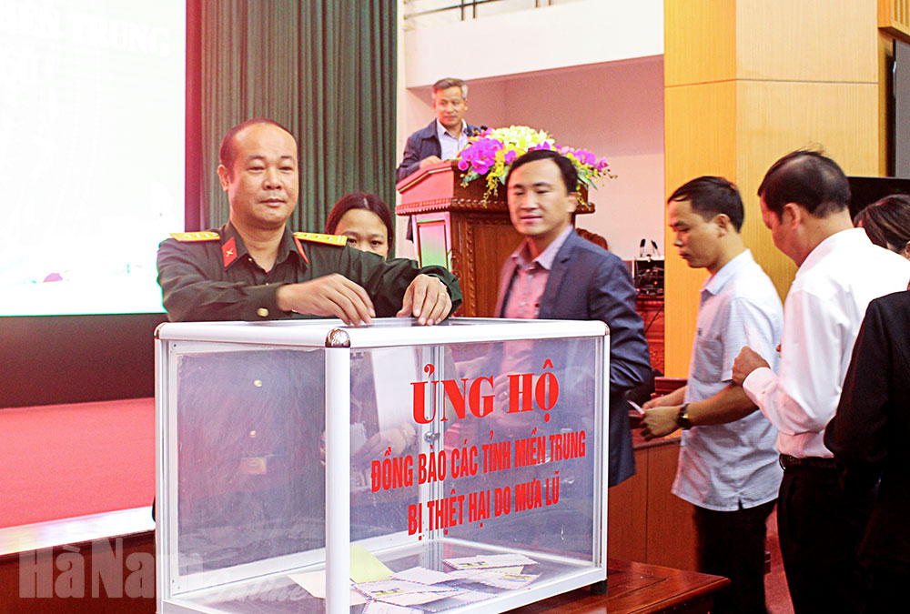 Cán bộ, công chức, viên chức các cơ quan, đơn vị trên địa bàn huyện Kim Bảng ủng hộ đồng bào miền Trung.
