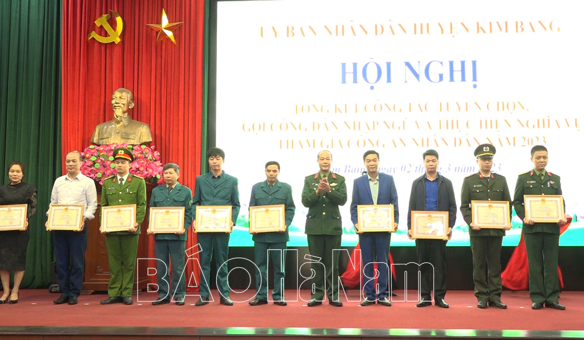 Nhân dịp này UBND huyện Kim Bảng đã biểu dương, khen thưởng 8 tập thể, 10 cá nhân có thành tích trong công tác tuyển chọn gọi công dân nhập ngũ và thực hiện nghĩa vụ công an nhân dân năm 2023.