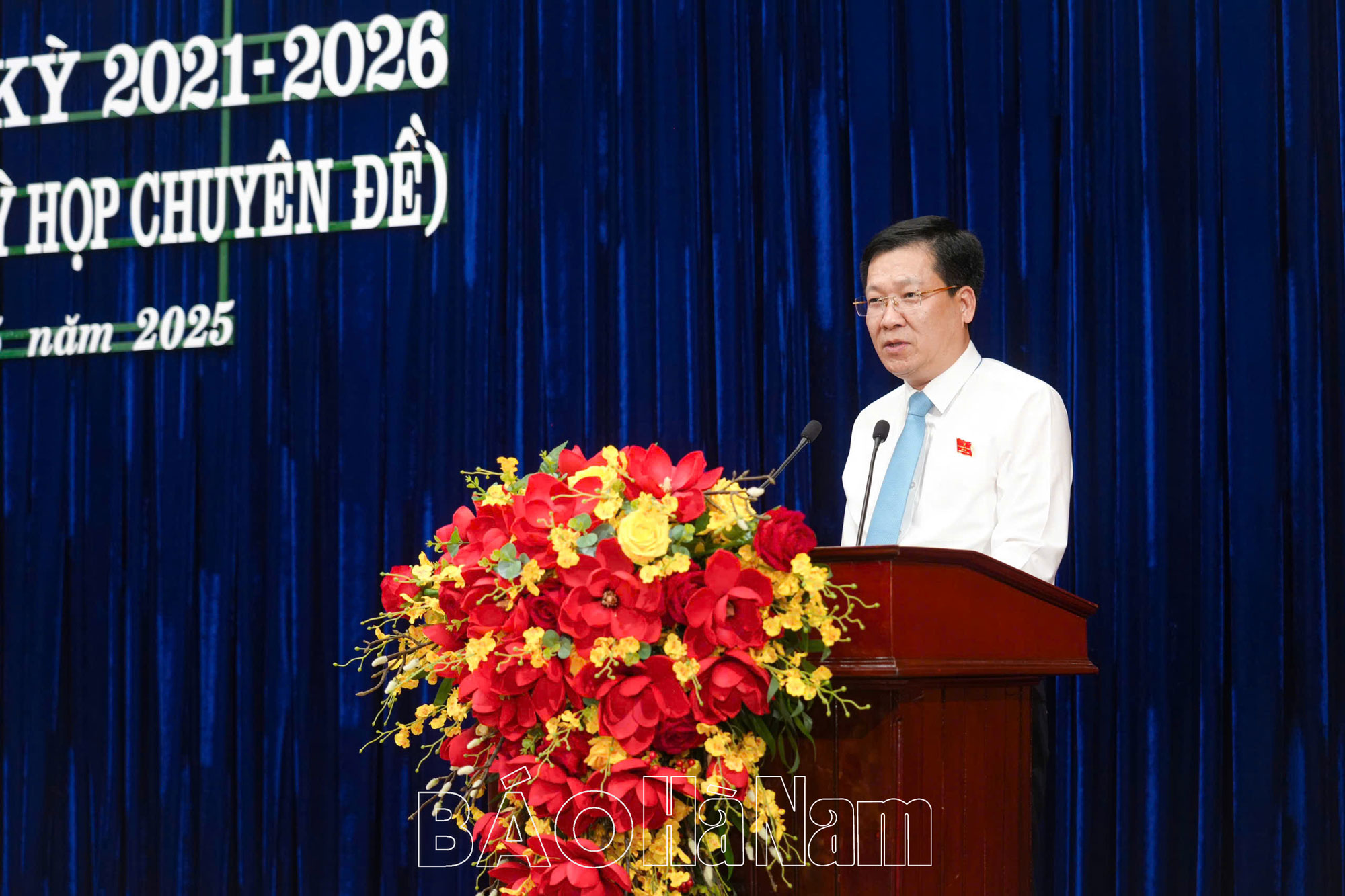 Phát biểu chỉ đạo tại Kỳ họp, đồng chí Bí thư Tỉnh ủy Trương Quốc Huy nhấn mạnh: Các công việc liên quan đến chủ trương sáp nhập tỉnh, thực hiện mô hình chính quyền địa phương 2 cấp đang được thực hiện khẩn trương theo chỉ đạo của Trung ương. Đồng thời, các địa phương đang quyết liệt thực hiện các giải pháp phát triển kinh tế - xã hội (KT-XH) bảo đảm chỉ tiêu tăng trưởng 2 con số trong năm 2025. Tỉnh Hà Nam quyết tâm đẩy nhanh đầu tư, thi công các dự án hạ tầng giao thông trọng điểm, dự án đô thị, nhà ở xã hội để tạo đà tăng trưởng kinh tế. Vì vậy, đề nghị sau Kỳ họp này, HĐND tỉnh khẩn trương ban hành Nghị quyết để UBND tỉnh sớm phân bổ nguồn vốn đầu tư công các dự án bảo đảm kế hoạch, mở ra các điều kiện thuận lợi cho phát triển KT-XH, mở rộng liên kết phát triển của tỉnh Ninh Bình mới sau sáp nhập.