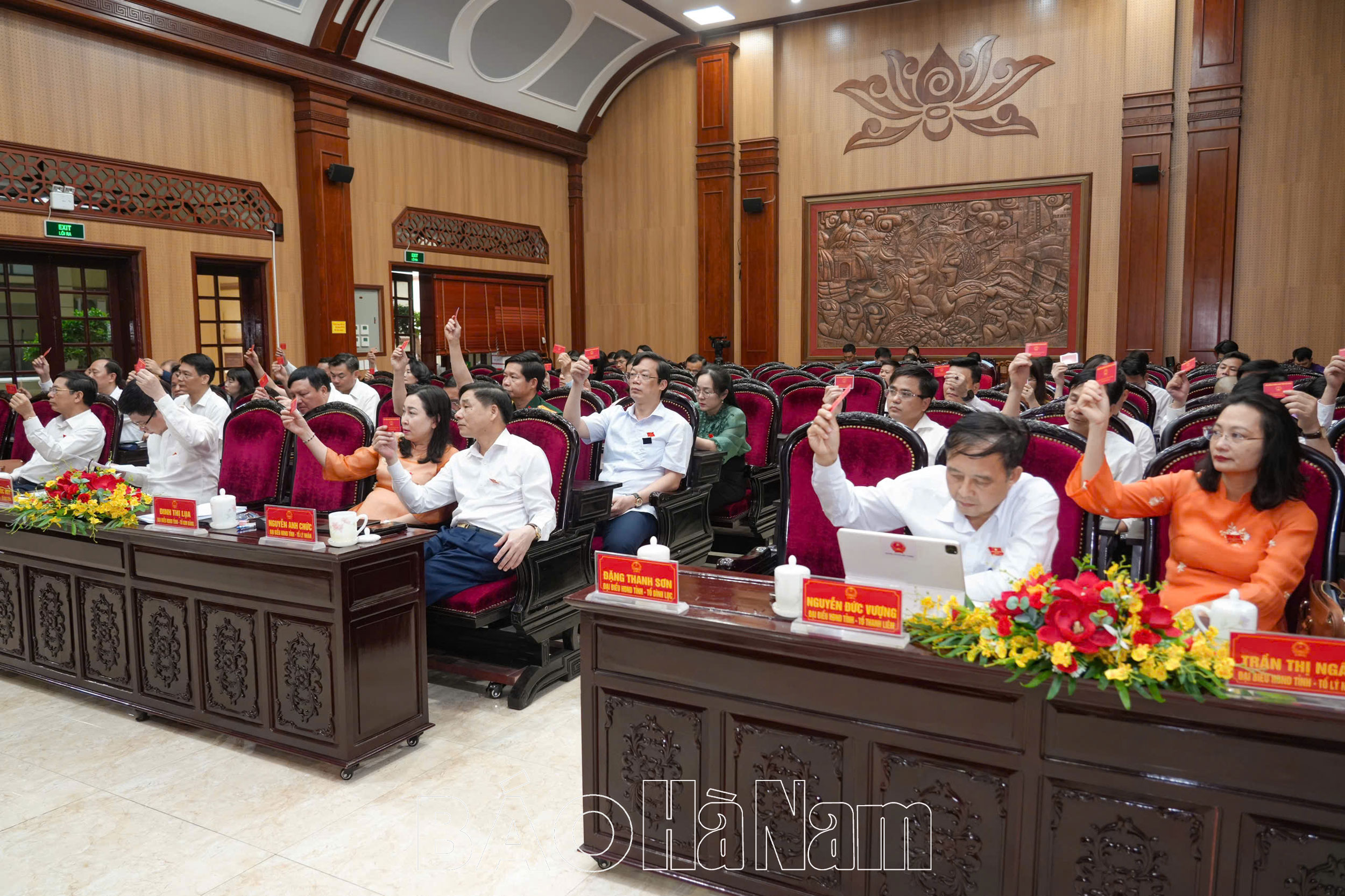 Phát biểu bế mạc Kỳ họp, đồng chí Phó Chủ tịch Thường trực HĐND tỉnh Đặng Thanh Sơn khẳng định: Các nghị quyết được thông qua tại Kỳ họp lần này là những nội dung rất quan trọng để kịp thời thực hiện các nhiệm vụ phát triển kinh tế, bảo đảm an sinh xã hội của tỉnh. Ngay sau Kỳ họp, HĐND tỉnh đề nghị UBND tỉnh khẩn trương cụ thể hóa và chỉ đạo tổ chức thực hiện các nghị quyết đã được HĐND tỉnh thông qua, tập trung đẩy nhanh tiến độ phân bổ và giải ngân vốn đầu tư công, hoàn thành các công trình, dự án bảo đảm chất lượng, tiến độ đề ra; triển khai hiệu quả cơ chế hỗ trợ phát triển nhà ở xã hội, giải quyết nhu cầu về nhà ở cho đối tượng thu nhập thấp và công nhân, lao động tại các khu, cụm công nghiệp trên địa bàn tỉnh, qua đó góp phần thu hút người lao động đến sinh sống và làm việc tại Hà Nam, phấn đấu hoàn thành mục tiêu về nhà ở xã hội được Chính phủ giao; bố trí ngân sách và các nguồn tài chính hợp pháp, đáp ứng kịp thời nhu cầu hỗ trợ khôi phục sản xuất vùng bị thiệt hại do thiên tai, dịch hại thực vật trên địa bàn tỉnh.