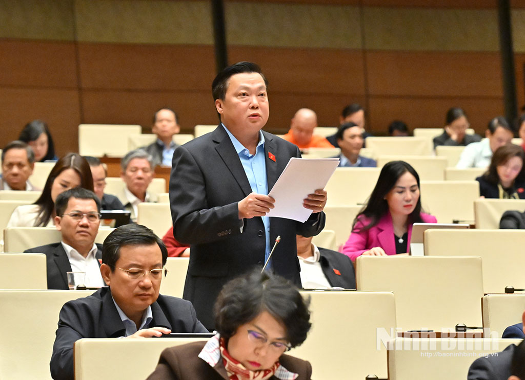 Đại biểu Phạm Hùng Thắng, Phó Trưởng Đoàn ĐBQH tỉnh Ninh Bình tham gia thảo luận tại Hội trường.