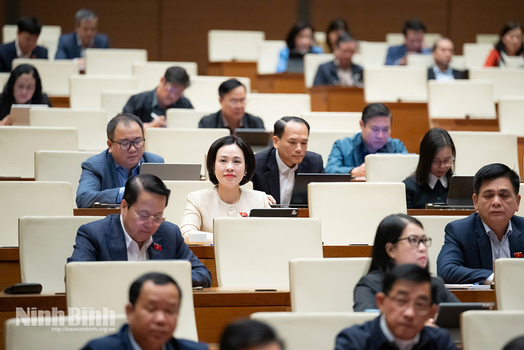 Các đại biểu Quốc hội tỉnh Ninh Bình tham gia thảo luận tại Hội trường sáng 20/11.