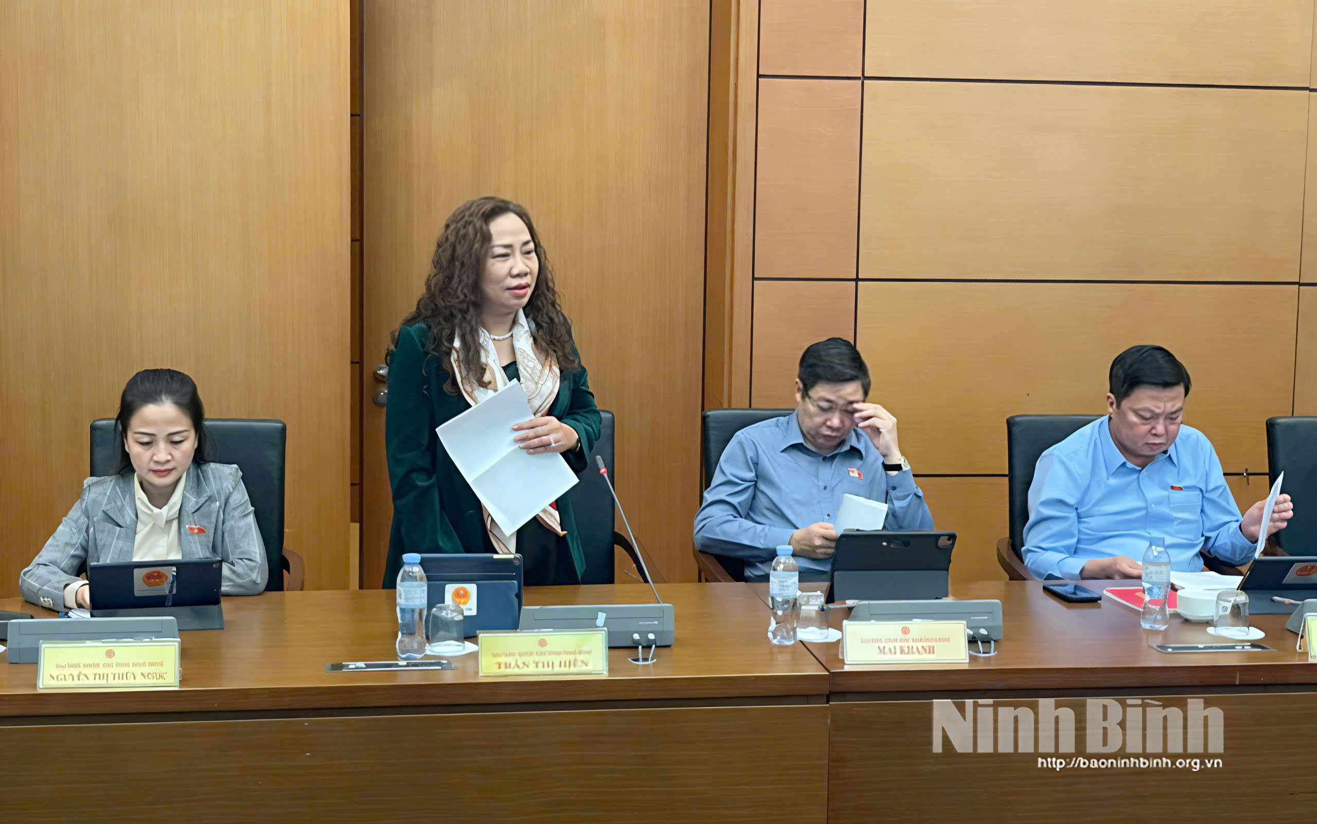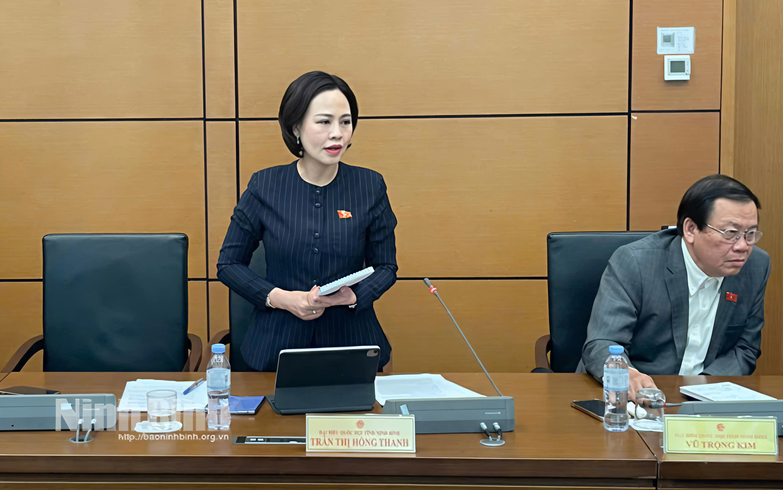 Đại biểu Trần Thị Hồng Thanh, Phó Trưởng Đoàn ĐBQH tỉnh Ninh Bình phát biểu thảo luận tại Tổ.