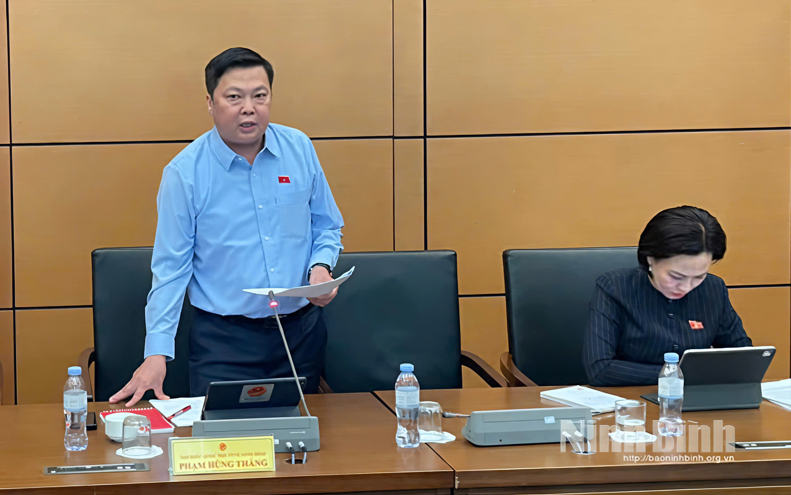 Đại biểu Phạm Hùng Thắng, Phó Trưởng đoàn ĐBQH tỉnh Ninh Bình phát biểu thảo luận tại Tổ.