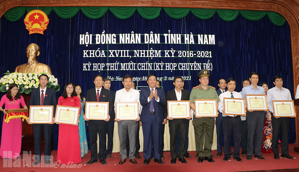 Với tinh thần nghiêm túc, trách nhiệm, kỳ họp thứ 19 HĐND tỉnh khóa XVIII đã hoàn thành các nội dung, chương trình đề ra. Kỳ họp đã nhất trí thông qua 04 Nghị quyết chuyên đề: Nghị quyết về kết quả hoạt động của HĐND tỉnh, Khóa XVIII, nhiệm kỳ 2016-2021; Nghị quyết về bổ sung, điều chỉnh các dự án thu hồi đất, dự án chuyển mục đích sử dụng dưới 10 ha đất trồng lúa năm 2021 trên địa bàn tỉnh Hà Nam; Nghị quyết quy định mức chi phục vụ bầu cử ĐBQH khóa XV và đại biểu HĐND các cấp tỉnh Hà Nam nhiệm kỳ 2021-2026; Nghị quyết về thành lập Văn phòng Đoàn ĐBQH và HĐND tỉnh trên cơ sở hợp nhất Văn phòng Đoàn ĐBQH và Văn phòng HĐND tỉnh.