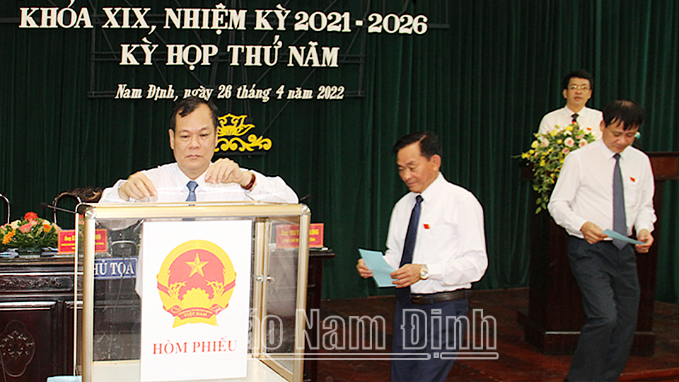 | Các đại biểu bỏ phiếu bầu bổ sung chức danh Ủy viên UBND tỉnh nhiệm kỳ 2021- 2026. |