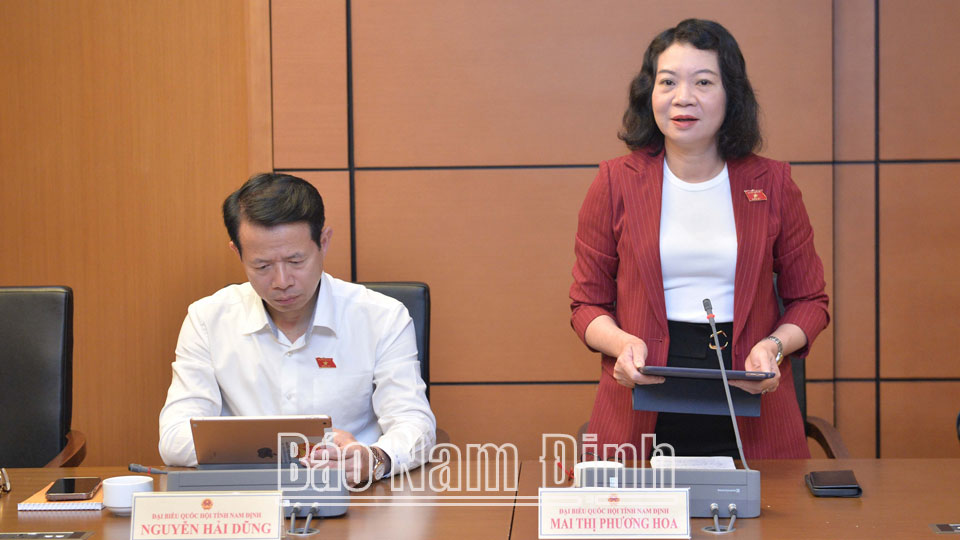 | Đồng chí Mai Thị Phương Hoa, Phó Chủ nhiệm Ủy ban Tư pháp của Quốc hội, đại biểu thuộc Đoàn ĐBQH tỉnh Nam Định phát biểu thảo luận. |
