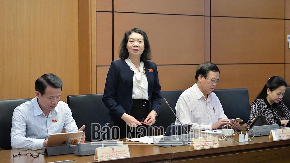 | Đồng chí Mai Thị Phương Hoa, Phó Chủ nhiệm Ủy ban Tư pháp của Quốc hội, đại biểu thuộc Đoàn ĐBQH tỉnh Nam Định phát biểu thảo luận. |