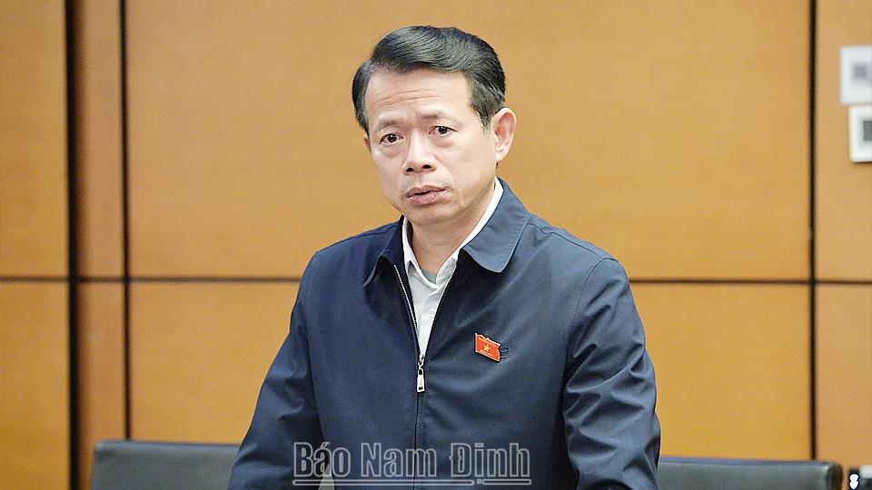 | Đồng chí Nguyễn Hải Dũng, TUV, Phó Trưởng đoàn chuyên trách Đoàn ĐBQH tỉnh Nam Định phát biểu thảo luận. |