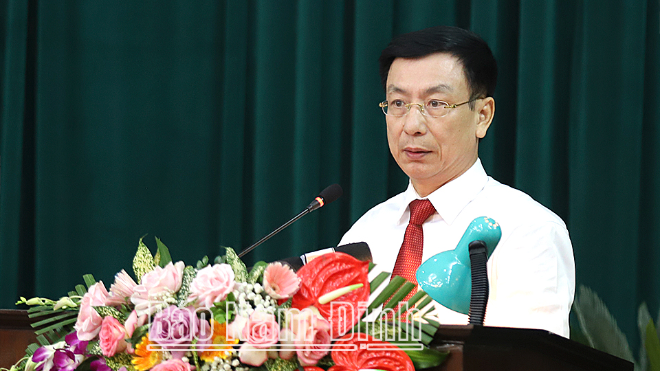 | Đồng chí Phạm Đình Nghị, Phó Bí thư Tỉnh ủy, Chủ tịch UBND tỉnh phát biểu tại kỳ họp. |