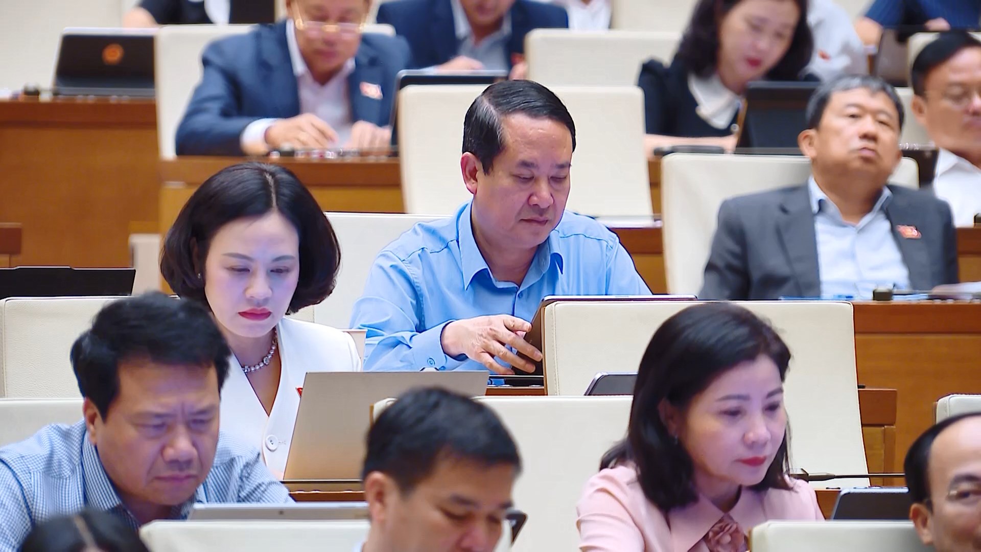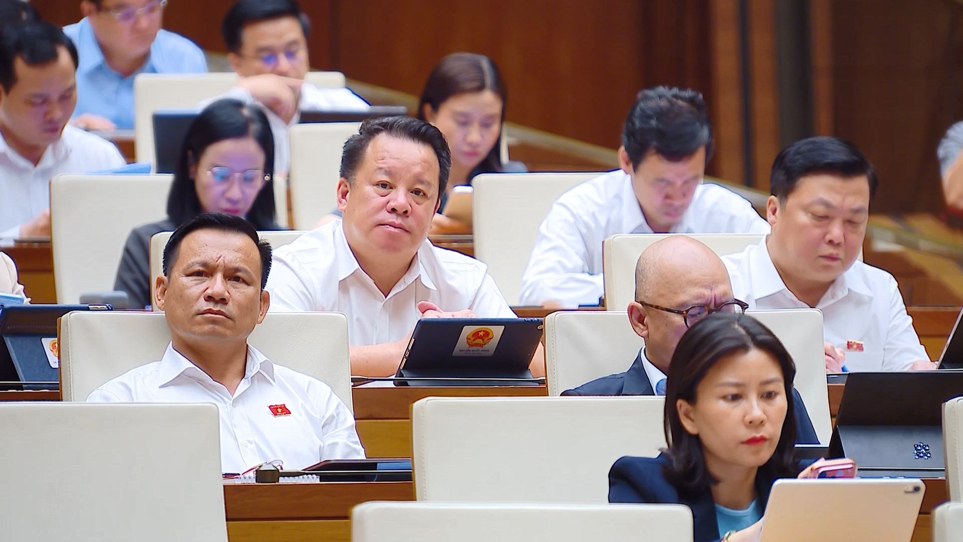 Đại biểu Quốc hội tỉnh Ninh Bình tham dự phiên họp toàn thể tại hội trường, chiều 9/4.