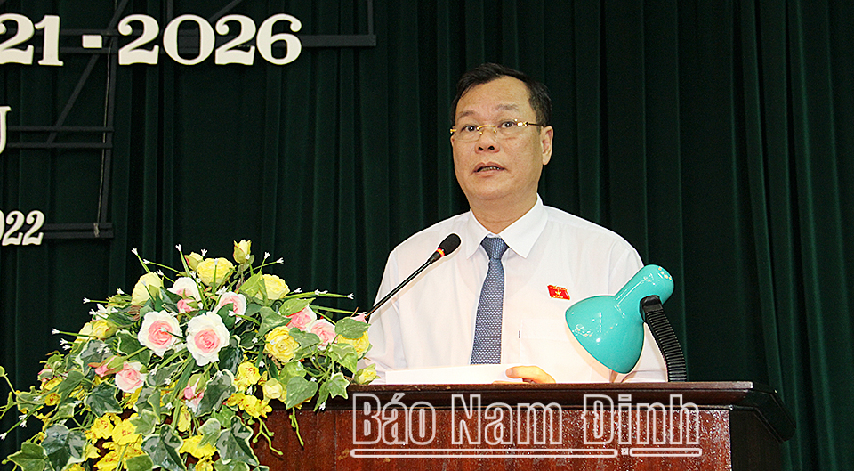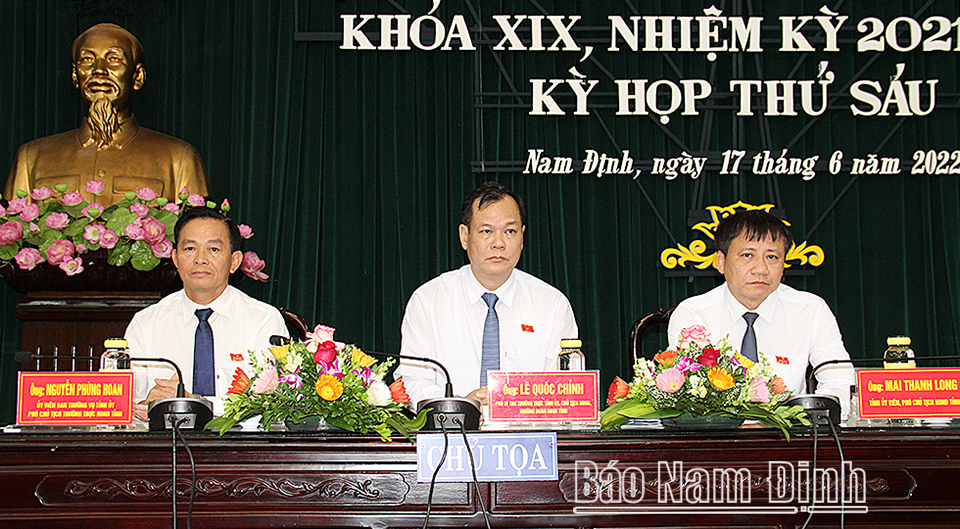 Kỳ họp lần thứ sáu HĐND tỉnh khóa XIX đã tiến hành biểu quyết cho thôi làm nhiệm vụ đại biểu HĐND tỉnh Nam Định khóa XIX (nhiệm kỳ 2021-2026) đối với đồng chí Đại tá Phạm Văn Long, nguyên Ủy viên Ban TVTU, Giám đốc Công an tỉnh, do nhận nhiệm vụ mới. Tiếp đó, các đại biểu HĐND tỉnh đã tập trung thảo luận nhất trí cao đối với các tờ trình của UBND tỉnh. Đồng thời biểu quyết, thông qua 12 dự thảo Nghị quyết về việc: Chấp thuận phương án vay lại và điều chỉnh trả nợ vốn vay ODA dự án “Xây dựng cầu dân sinh và quản lý tài sản đường địa phương (LRAMP)” thực hiện tại tỉnh Nam Định, vay vốn Ngân hàng Thế giới (WB); Chấp thuận phương án vay lại và điều chỉnh trả nợ vốn vay ODA dự án “Tăng cường quản lý đất đai và cơ sở dữ liệu đất đai (VILG)” thực hiện tại tỉnh Nam Định, vay vốn Ngân hàng Thế giới (WB); Quyết định chủ trương đầu tư Dự án Xây dựng, cải tạo, nâng cấp Trường Cao đẳng Kinh tế và Công nghệ Nam Định; Chấp thuận điều chỉnh phương án trả nợ vốn vay ODA dự án; Quyết định chủ trương đầu tư Dự án xây dựng, nâng cấp, cải tạo các cơ sở trợ giúp xã hội tỉnh Nam Định; Quyết định chủ trương đầu tư dự án Xây dựng khu dân cư tập trung các xã Hải Ninh, Hải Đông, Hải Chính, Hải Phương và Hải Bắc, huyện Hải Hậu; Phê duyệt điều chỉnh chủ trương đầu tư dự án Xây dựng tuyến đường bộ mới Nam Định - Lạc Quần - Đường bộ ven biển; Chấp thuận điều chỉnh thời gian thực hiện dự án Cải tạo, nâng cấp đường Thành - Xá, huyện Ý Yên; Cho thôi làm nhiệm vụ đại biểu HĐND tỉnh khóa XIX, nhiệm kỳ 2021-2026.