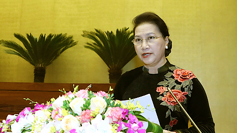| Chủ tịch Quốc hội Nguyễn Thị Kim Ngân đọc diễn văn bế mạc kỳ họp. |