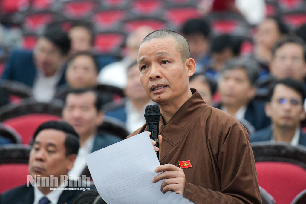 Liên quan đến nội dung về giải pháp khắc phục tình trạng xuống cấp của nhiều di tích cấp tỉnh, cấp quốc gia, đồng chí Lê Nguyên Ngọc, Tỉnh ủy viên, Giám đốc Sở Văn hóa và Thể thao cho biết: Sau thực hiện sáp nhập tỉnh, tỉnh Ninh Bình hiện có số lượng di tích rất lớn. Toàn tỉnh hiện có 5.071 di tích được kiểm kê; trong có có 1.106 di tích đã xếp hạng, gồm 1 Di sản thế giới, 10 di tích quốc gia đặc biệt, 264 di tích quốc gia, 832 di tích cấp tỉnh. Các di tích trên địa bàn tỉnh có niên đại hàng trăm năm, được xây dựng bằng các vật liệu dễ bị tác động bởi thời tiết dẫn đến sự xuống cấp của các di tích. Trong đó, có nhiều di tích hiện xuống cấp nghiêm trọng. Trong những năm qua, tỉnh đã hỗ trợ tu bổ, chống xuống cấp hàng nghìn lượt di tích bằng nguồn vốn từ ngân sách nhà nước. Đồng thời, chính quyền địa phương, Ban quản lý các di tích đã chủ động huy động các nguồn vốn xã hội hóa để thực hiện công tác tu bổ, tôn tạo di tích. Song, do nguồn lực của Nhà nước có hạn, việc đầu tư, tu bổ, tôn tạo, chống xuống cấp các di tích còn diễn ra đơn lẻ, chưa mang tính hệ thống, chưa có chương trình tổng thể, chưa đáp ứng được nhu cầu thực tế.