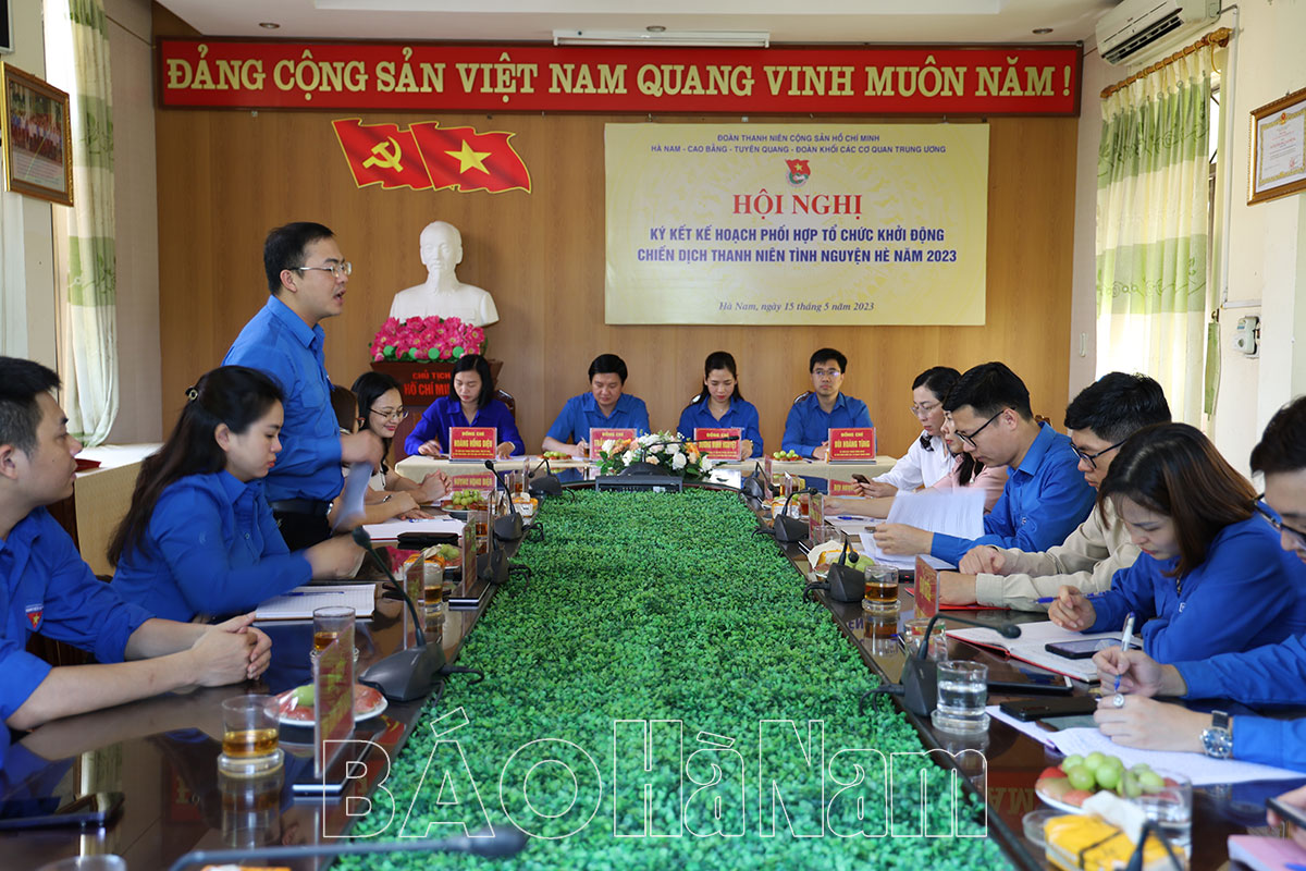 Thực hiện Chương trình công tác Đoàn và phong trào thanh thiếu nhi năm 2023; Kế hoạch tổ chức Chiến dịch Thanh niên tình nguyện hè năm 2023 của các đơn vị, sáng 15/5, Ban Thường vụ Đoàn Khối các cơ quan Trung ương và Tỉnh đoàn các tỉnh Hà Nam, Tuyên Quang, Cao Bằng phối hợp tổ chức hội nghị ký kết Kế hoạch phối hợp tổ chức khởi động Chiến dịch Thanh niên tình nguyện hè năm 2023 với chủ đề “Hành trình theo chân Bác”.