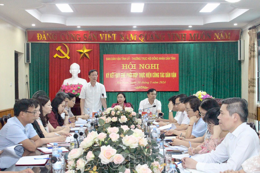 Đồng chí cũng đề nghị hai cơ quan ngay sau hội nghị ký kết Quy chế phối hợp, căn cứ nhiệm vụ chính trị của tỉnh và chức năng, nhiệm vụ của từng cơ quan, hằng năm, xây dựng kế hoạch lựa chọn những nội dung phối hợp cụ thể, có trọng tâm, trọng điểm, bám sát vào tình hình thực tiễn, đời sống của Nhân dân để triển khai thiết thực, hiệu quả, góp phần tạo chuyển biến tích cực trong công tác dân vận của HĐND các cấp, phát huy quyền làm chủ của mọi người dân, tạo sự đồng thuận xã hội; tập hợp, động viên các tầng lớp Nhân dân thực hiện thắng lợi các mục tiêu, chỉ tiêu phát triển kinh tế - xã hội, giữ gìn an ninh trật tự, xây dựng hệ thống chính trị trong sạch, vững mạnh.