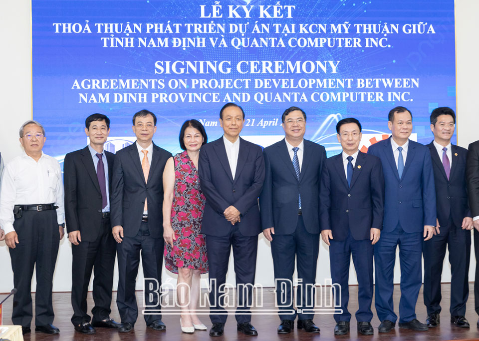 Phát biểu tại buổi ký kết, Ông Huang, Chen-Tang, Chủ tịch Hội đồng quản trị Quanta tại nước ngoài đã nhấn mạnh: Sau quá trình khảo sát đánh giá hiện trạng, tiềm năng phát triển tại một số tỉnh trên toàn quốc, đặc biệt là lĩnh vực sản xuất máy tính, Tập đoàn Quanta cảm nhận được sự nhiệt thành, tận tâm hỗ trợ tối đa cho nhà đầu tư của lãnh đạo tỉnh Nam Định cộng với vị thế địa lý của Nam Định tương đối thuận lợi; tỉnh đã không ngừng quan tâm cải thiện hệ thống hạ tầng theo hướng kết nối liên vùng nên Tập đoàn lựa chọn KCN Mỹ Thuận của Nam Định là địa điểm phát triển dự án sản xuất máy tính, sử dụng công nghệ hiện đại, tạo ra sản phẩm có giá trị gia tăng cao. Chủ tịch Hội đồng Quản trị Quanta tại nước ngoài cũng khẳng định quyết tâm thực hiện dự án sản xuất máy tính của Tập đoàn; đồng thời đề nghị tỉnh tiếp tục tạo điều kiện, hỗ trợ đẩy nhanh tiến độ triển khai và đảm bảo chất lượng dự án, sớm đưa dự án vào vận hành.