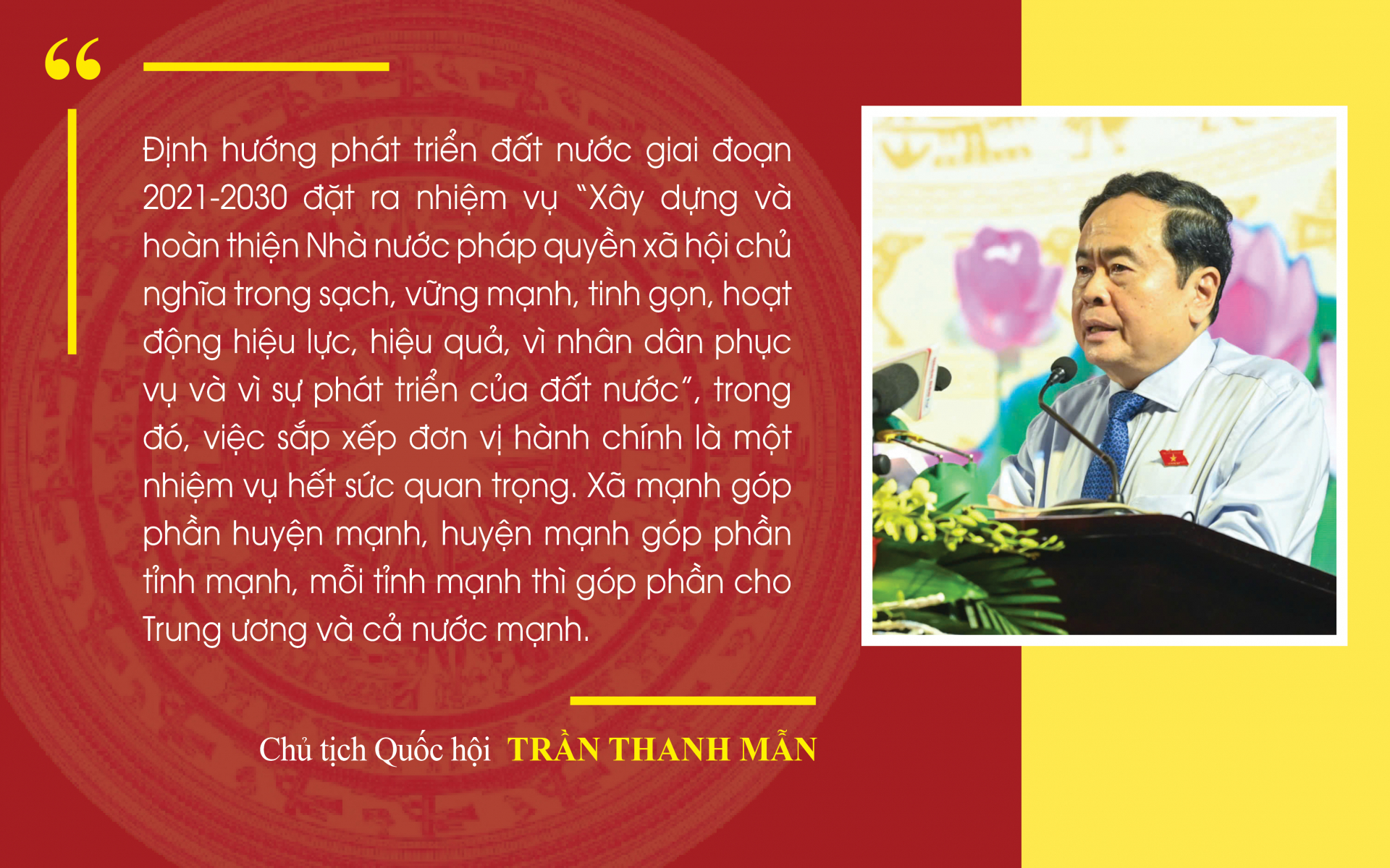 Sẽ có rất nhiều việc phải làm quyết liệt nhưng vững chắc để có được một hệ thống tổ chức bộ máy của Đảng, của hệ thống chính trị tinh gọn, thống nhất, hợp lý, đồng bộ, thông suốt, hoạt động hiệu lực, hiệu quả theo nguyên tắc kết nối – tương tác – chia sẻ, có khả năng thích ứng cao với thời cuộc luôn thay đổi; để có được một đội ngũ cán bộ, đảng viên liêm khiết, mẫu mực, tiêu biểu hết lòng vì Đảng, vì Dân. Đây thực sự là một cuộc cách mạng về xây dựng, chỉnh đốn Đảng và hệ thống chính trị trong kỷ nguyên vươn mình của dân tộc.