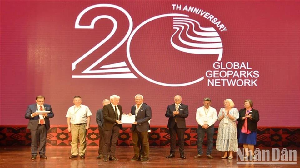 Dịp này, Mạng lưới Công viên địa chất toàn cầu UNESCO đã trao chứng nhận tôn vinh đóng góp của các đại biểu, chuyên gia có nhiều đóng góp trong hoạt động của mạng lưới.