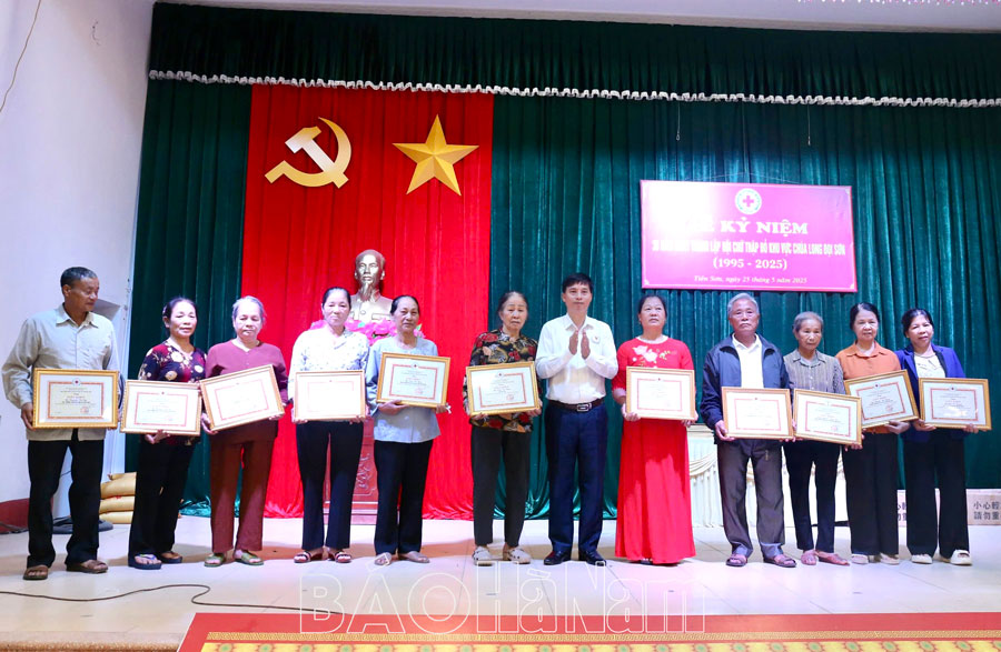 Tại lễ kỷ niệm, các đại biểu đã cùng nhau ôn lại truyền thống 30 năm hình thành, phát triển của Hội CTĐ khu vực chùa Long Đọi Sơn; ghi nhận sự đóng góp của các thế hệ cán bộ, hội viên, tình nguyện viên và nhân dân. Khi mới thành lập Hội CTĐ khu vực chùa Long Đọi Sơn chỉ có 300 thành viên, đến nay đã phát triển mạng lưới hội viên tại các xã Tiên Sơn, Đinh Xá, Tân Hiệp, Yên Nam, Tiên Ngoại với 5.000 thành viên sinh hoạt đều đặn hằng quý tại 26 chi hội. Hằng năm, nhân dịp lễ, Tết, các ngày lễ kỷ niệm lớn, hội tổ chức thăm hỏi, tặng quà hội viên, gia đình có hoàn cảnh khó khăn trên địa bàn tỉnh. Riêng những tháng đầu năm 2025, tổng giá trị hoạt động nhân đạo của hội đạt hơn 100 triệu đồng. Trong đó, đã vận động trao hơn 200 suất quà tặng các hộ gia đình có hoàn cảnh khó khăn, hộ nghèo trên địa bàn tỉnh; phối hợp với Hội CTĐ tỉnh trao tặng 18 chiếc xe lăn cho người nghèo, người khuyết tật.