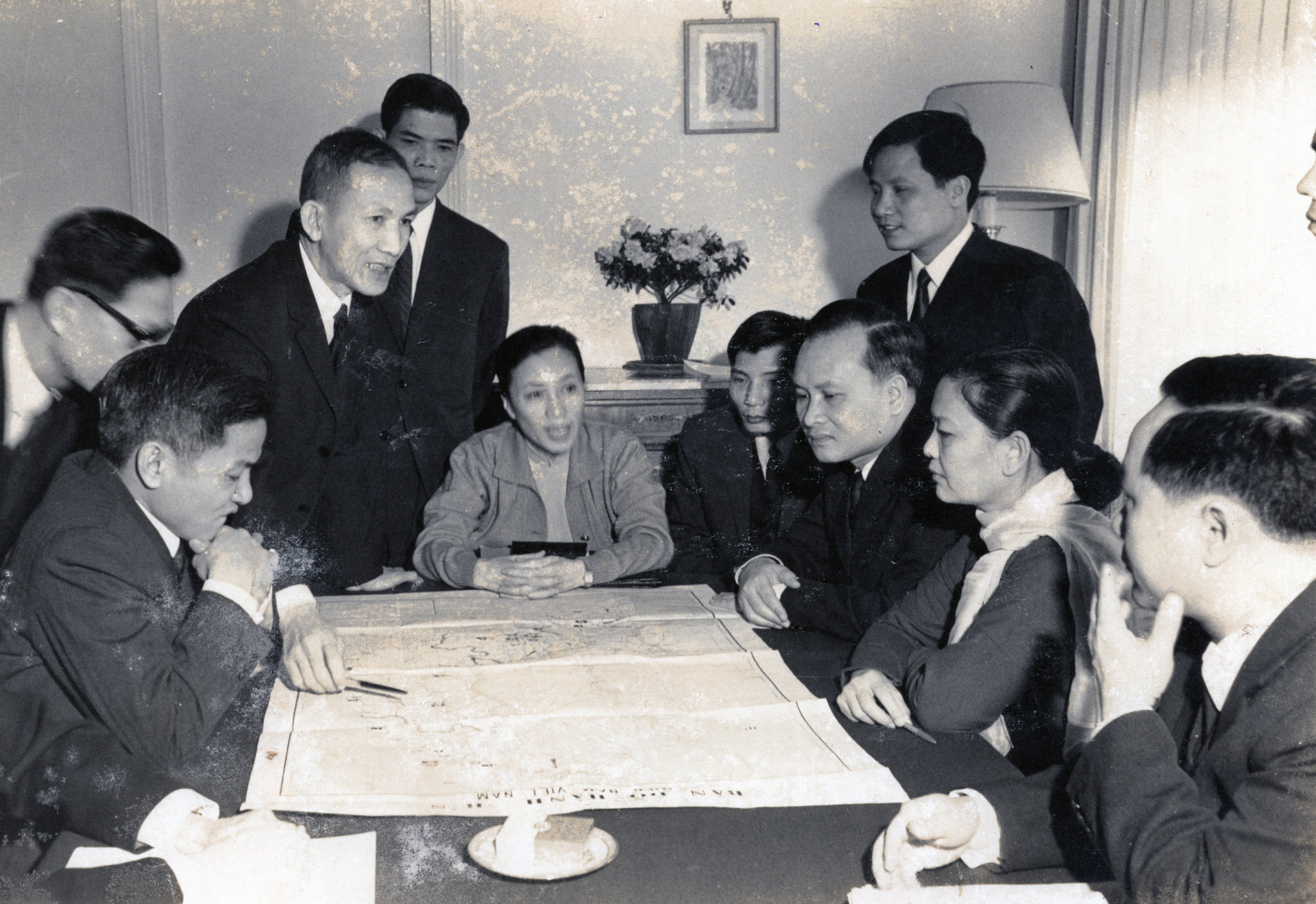 | Một cuộc sinh hoạt của phái Đoàn Chính phủ Cách mạng lâm thời miền Nam, năm 1969 (Trong ảnh: Nhà báo Hà Đăng đứng bên phải). Nguồn: Bảo tàng Báo chí Việt Nam |