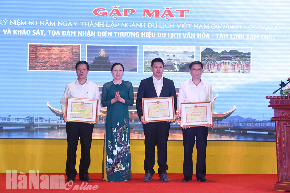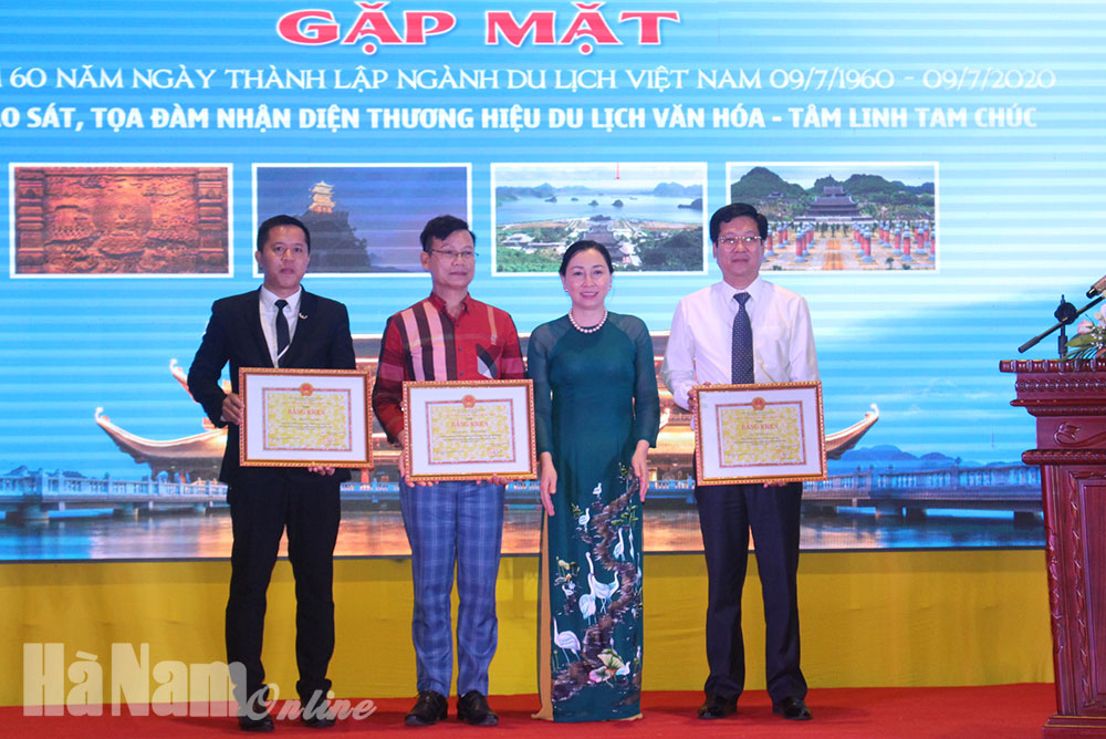 Tại hội nghị, Ban tổ chức chương trình đã trao Bằng khen của Chủ tịch UBND tỉnh cho 3 cá nhân và 3 tập thể có nhiều đóng góp cho sự nghiệp phát triển du lịch Hà Nam giai đoạn 2015 – 2020.