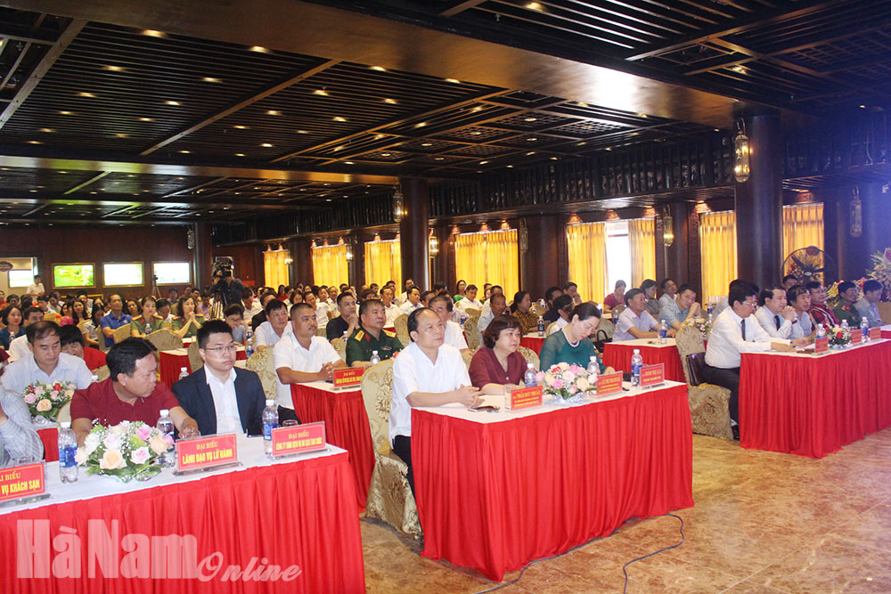 Đại diện lãnh đạo Sở VH,TT&DL Hà Nam, ông Lê Xuân Huy, TUV, Giám đốc Sở đã ôn lại lịch sử hình thành và phát triển của ngành Du lịch Việt Nam trong 60 năm qua cũng như những thành tựu ngành đạt được và trở thành ngành kinh tế mũi nhọn của Việt Nam trong thời gian gần đây. Ông Lê Xuân Huy cho biết, với Hà Nam, du lịch cũng đã có bước phát triển đột phá, kể từ khi tái lập tỉnh. Hiện Hà Nam có 25 khách sạn trong đó 02 khách sạn 5 sao, 04 khách sạn 3 sao và 19 khách sạn 1, 2 sao; 129 nhà nghỉ đạt tiêu chuẩn, đảm bảo điều kiện tối thiểu kinh doanh lưu trú du lịch với tổng số gần 2.000 buồng và hơn 30 doanh nghiệp kinh doanh lữ hành nội địa.